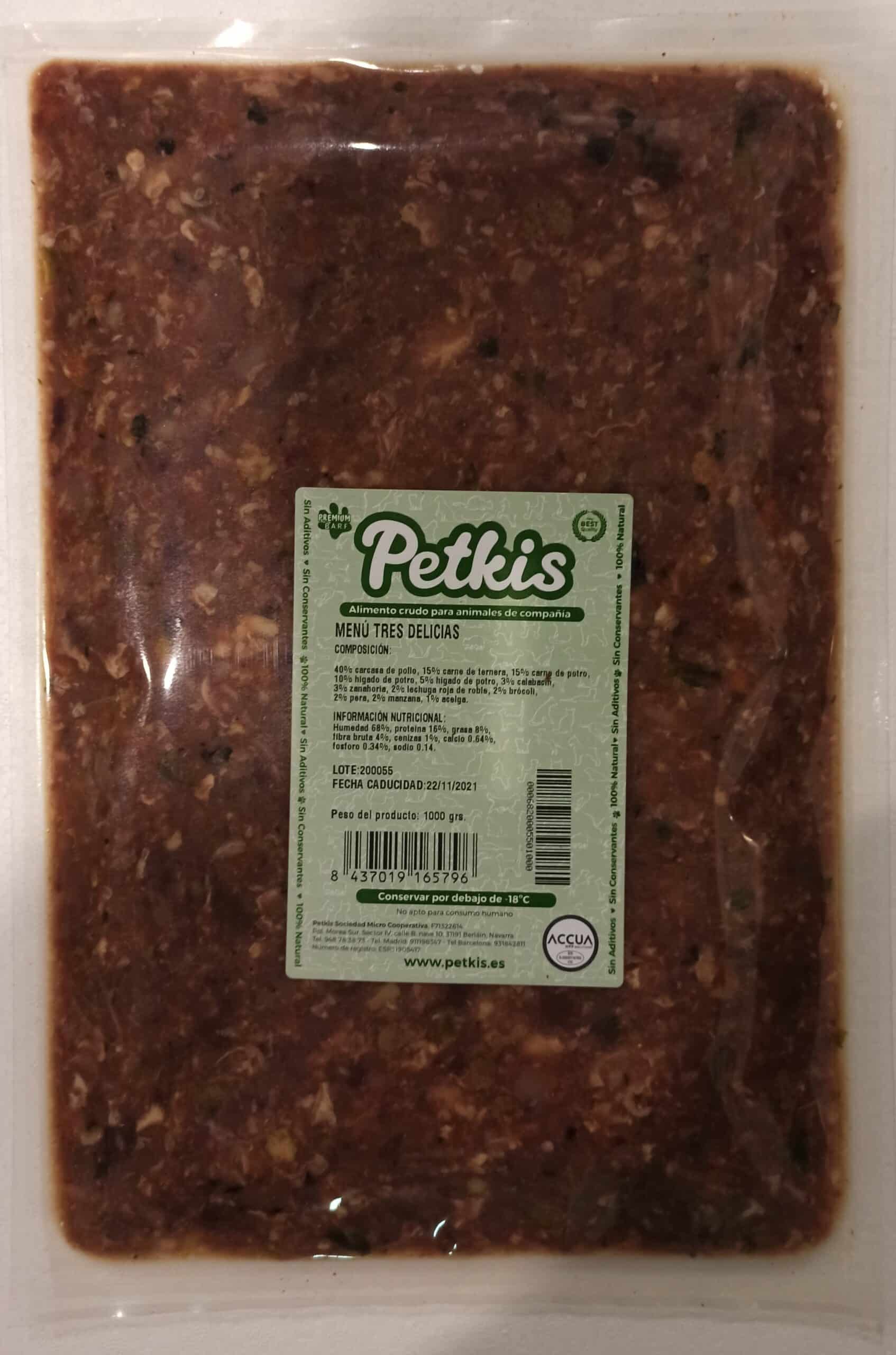 Los ingredientes del menú BARF completo de potro y ternera son:
