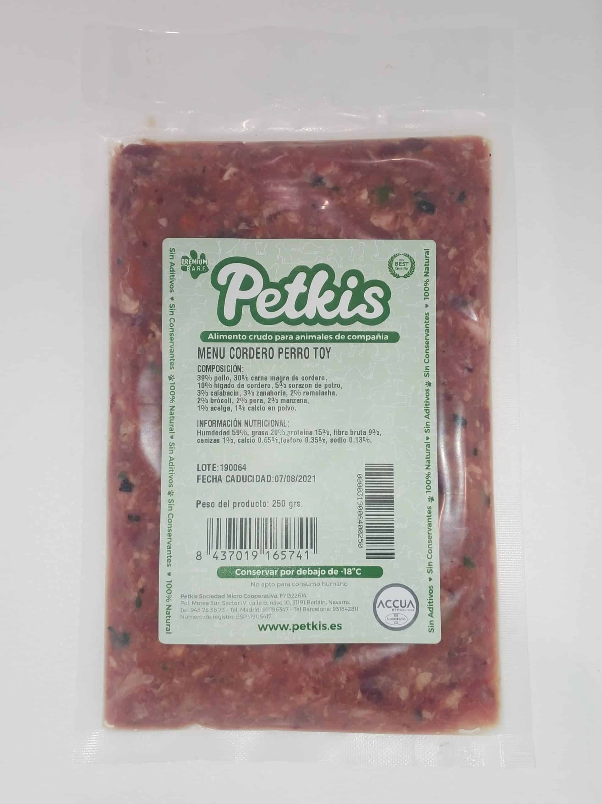 El cordero es una carne que aporta un extra de grasa. Por eso, es ideal para perros toy con bajo peso.