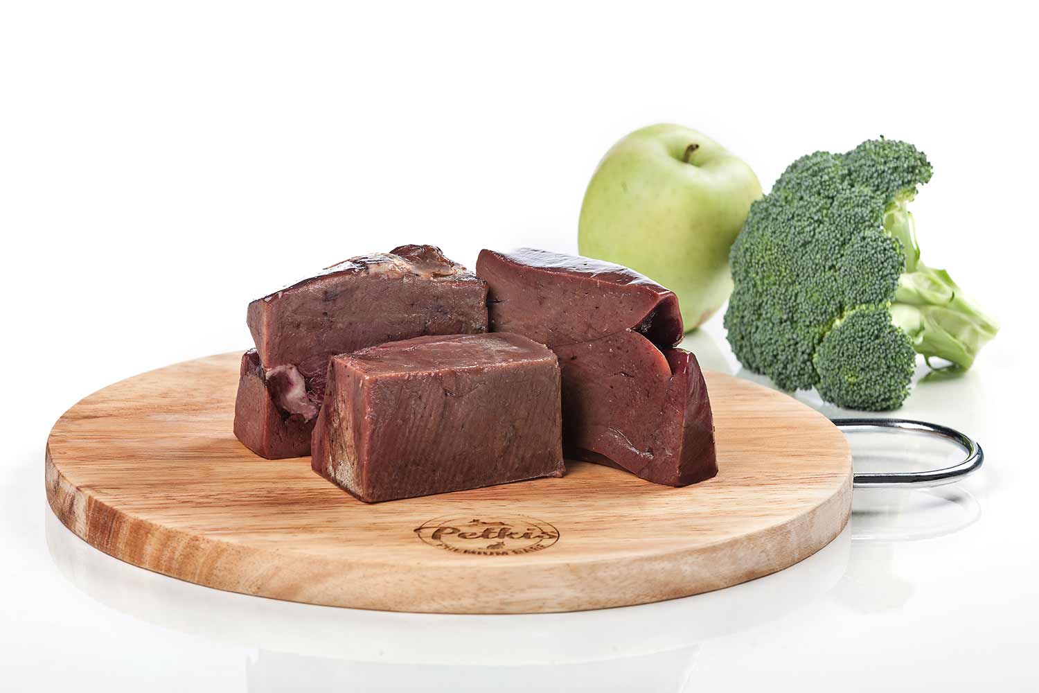 2,5kg de hígado de potro en bolsa al vacío de 30x35cm que contiene 10/12 dados de ~200g cada uno.