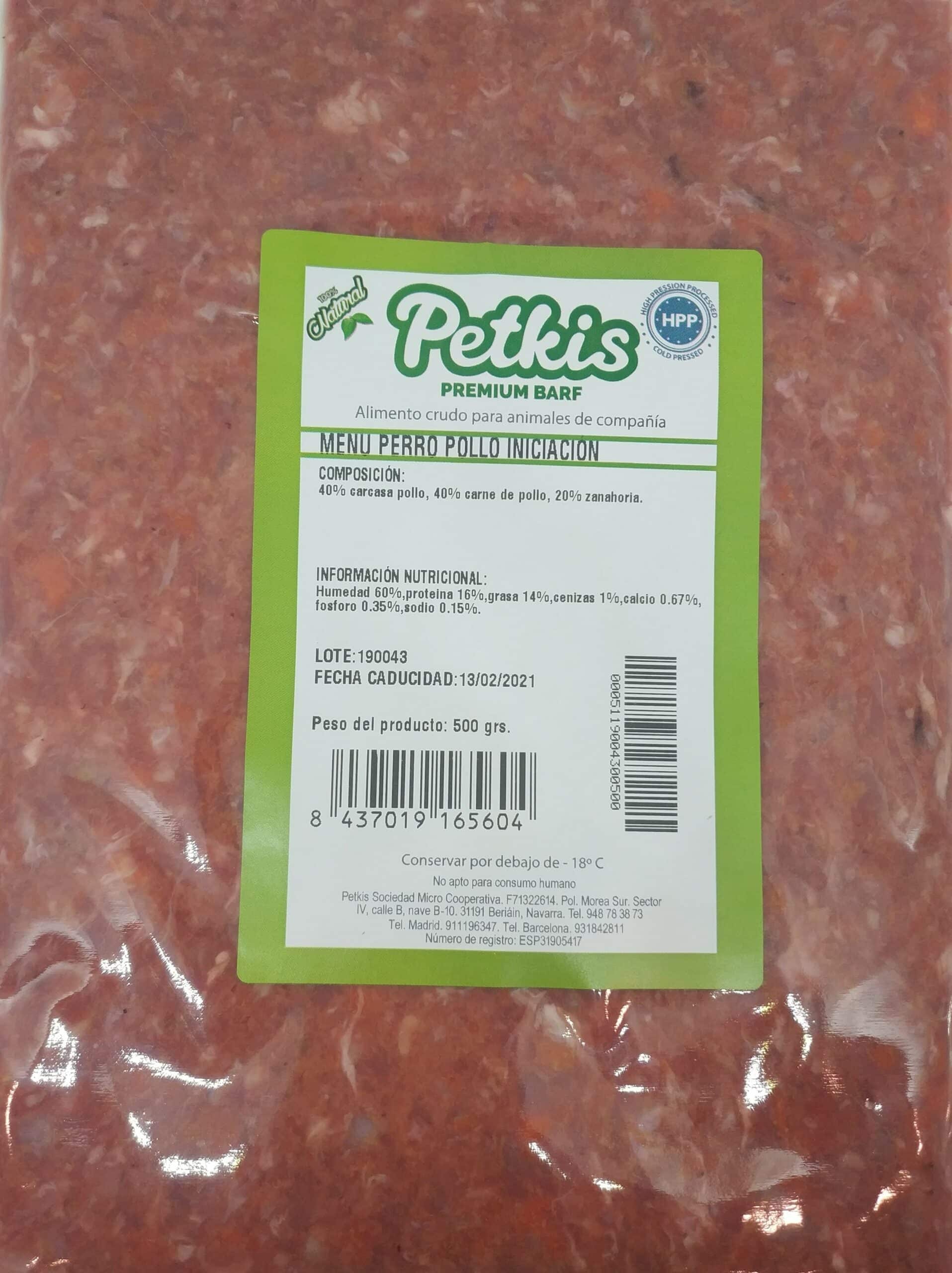 Huesos carnosos, carne magra y vísceras: 40% carne de pollo, 40% carcasa de pollo.